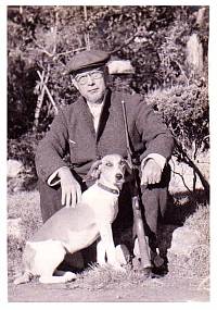 「1959年・巽(私の名)が庭で撮影」と記録された、父の写真。空気銃を持っています。一緒に写っている愛犬の名は「チロ」ちょうど半世紀前、私が15の春でした。