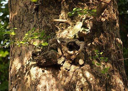 樹に動物の顔が現れるだけでも不思議、それが鹿、そしてお宮の境内、そのお宮には鹿が飼われている。この不思議な一致は何なのでしょう?